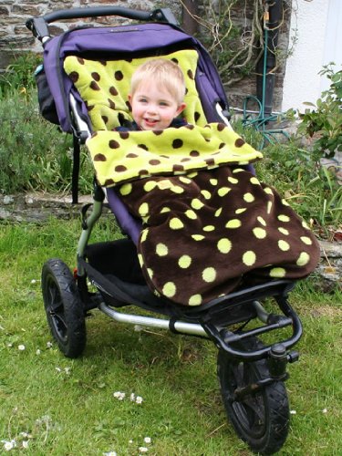 寒い日でも暖かい、厚手のフリース。ライム x ブラウンのドットが新しい