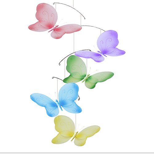 - 育児室、子供部屋に最適な女の子の部屋とホームデコレーション。モバイルは完璧な子供部屋モバイル5メッシュナイロンハンギング蝶翼のある渦巻きのグリッターのアクセントが付いて特別な輝きをお届けします。この可愛いオーガンジーの蝶の装飾は、ソフトで折り曲げ可能のワイヤーフレームを作成することもできますこちらの5ピース組み立て済み、天井吊りモバイルは愛らしい7 " W x 5 " H蝶です。