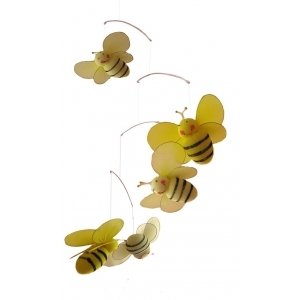 Bumblebee Mobile Yellow Smiling Nylon Mesh Bees Mobiles Decorations. Decorate a Baby Nursery Bedroom, Girls Room Hanging Ceiling Decor, Wedding Birthday Party, Bridal Baby Shower, Bathroom, Home, Honey Bee Nursery Mobile Decoration, 3D Art DIY Craft;Ideal for baby nursery, kids bedroom, girls room & home decor. Nylon hanging bumble bee mobile is a perfect nursery mobile with 5 mesh bees with white wings with clear sequins and yellow body accented hand painted black stripes and a smiling face. These pretty organza bumblebee decorations are made with a soft bendable wire frame. This 5 piece pre-assembled ceiling hanging mobile has adorable 5 W x 4 H bumble bees.;These pretty mesh nylon bumble bees are made with a soft bendable wire frame. These hanging mobiiles are perfect to hang from the ceiling above a changing table, crib or the corner of a room. Ceiling hardware not included. Perfect for spaces such as child's bedrooms, baby nursery rooms, play areas.;Bumble bees are pre-strung with clear line and hoop for easy hanging from the ceiling. Mobile hangs approximately 24 long. Does not attach to cribs, these mobiles hang from the ceiling. Do not play music or wind up to spin. Visit our Amazon store for more great items: www.amazon.com/shops/Bugs-n-Blooms;Please note: Sizes are approximate, handmade and variances may occur. Additional colors, sizes, & styles are available, please see store for details. Please visit our Amazon store on 'How To Hang' for tips and suggestions: http://www.amazon.com/gp/aag/details/ref=dp_mi_seller_details?ie=UTF8&seller=A2RFZLVKNCOP5I#custom