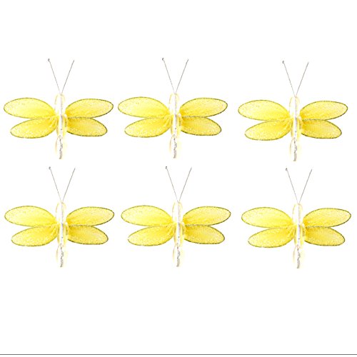ナイロントンボの装飾キラキラ – ミニメッシュオーガンジードラゴンフライ装飾ウェディングパーティーテーブル散布スクラップブッククラフトカード女の子寝室赤ちゃん保育園ホーム壁デコレーションby bugs-n-blooms X-Small 2"W x 2"H イエロー 2YMD-CS