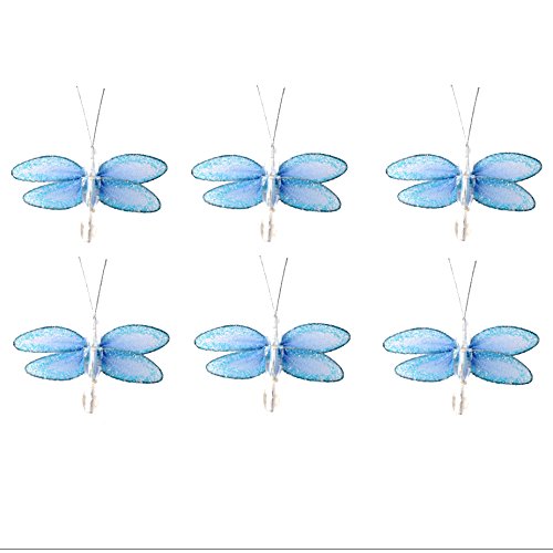 ナイロントンボの装飾キラキラ – ミニメッシュオーガンジードラゴンフライ装飾ウェディングパーティーテーブル散布スクラップブッククラフトカード女の子寝室赤ちゃん保育園ホーム壁デコレーションby bugs-n-blooms X-Small 2"W x 2"H ブルー 2BMD-CS