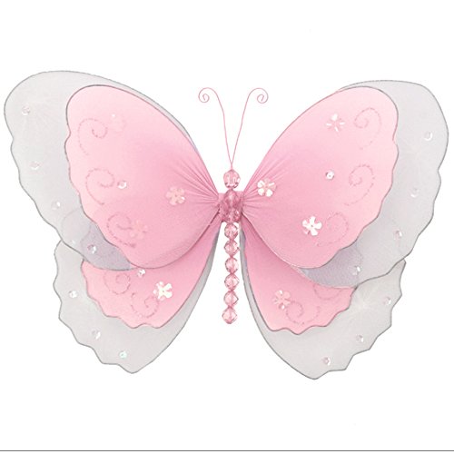 Hangingバタフライピンクmulti-layeredナイロンメッシュ蝶デコレーション装飾赤ちゃん保育園寝室女の子部屋天井壁装飾結婚式誕生日パーティーベビーシャワーホーム子供Childrens 3dアートDIY Large 13" ピンク 13PMLB