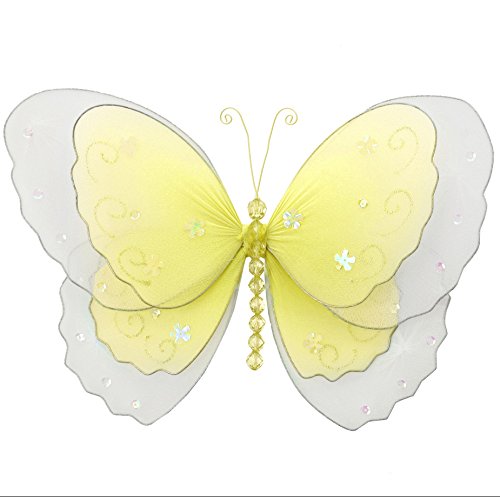 Hangingバタフライイエローmulti-layeredナイロンメッシュ蝶デコレーション装飾赤ちゃん保育園寝室女の子部屋天井壁装飾結婚式誕生日パーティーベビーシャワーホーム子供子3dアートDIY Large 13" イエロー 13YMLB
