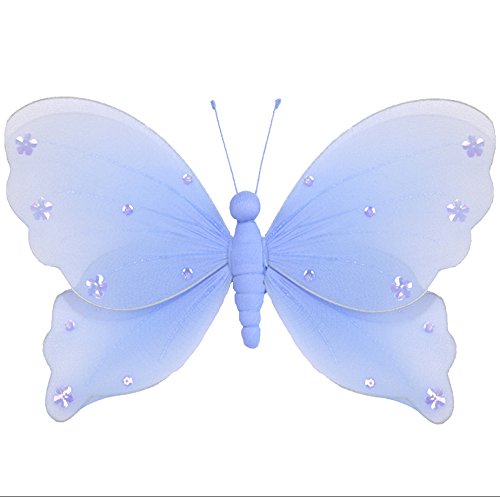 - 育児室、子供部屋に最適な女の子の部屋とホームデコレーション。ナイロン生地を垂らしたバタフライは同じ色の同じ色のキラキラスパンコールの細線にかわいい生地で飾られ、翼のボディ&アンテナ。この可愛いオーガンジーの蝶の飾りは、ソフトで折り曲げ可能なワイヤーフレームを作成することもできます