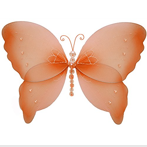 HangingバタフライオレンジクリスタルナイロンButterfliesメッシュデコレーション装飾赤ちゃん保育園寝室女の子部屋天井壁装飾結婚誕生日パーティーブライダルベビーシャワーホームKids Children 3dアートDIY Small 7" オレンジ 7OCB