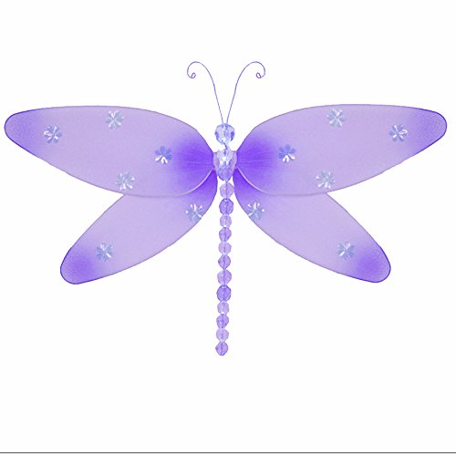 Hanging DragonflyパープルラベンダーSparkleナイロントンボメッシュデコレーション装飾赤ちゃん保育園寝室女の子部屋天井壁装飾結婚式誕生日パーティーベビーシャワーバスルームKid子3dアート Medium 10" パープル 10PUSKD