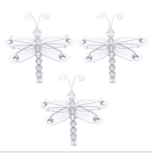 ドラゴンフライDecor 3」ホワイトMini XS Wire Hangingナイロンメッシュトンボ3 Pieceデコレーションセット装飾赤ちゃん保育園寝室女の子部屋壁結婚式誕生日シャワークラフトスクラップブック招待状DIY