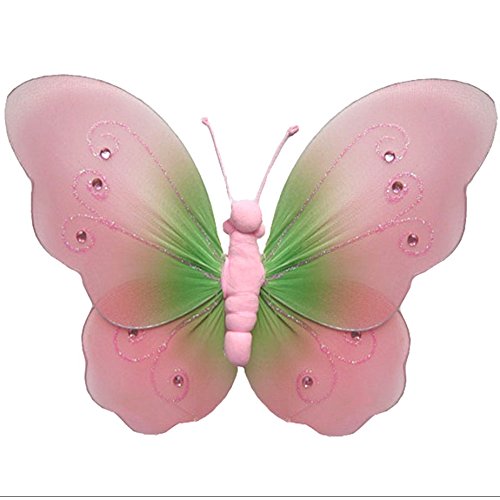 - 吊りバタフライグリーン&ピンクツートンカラーのナイロンメッシュ蝶のデコレーションです。装飾として育児室ベッドルーム、プレイルーム、子供、女子のための結婚式やベビーシャワー、バスルームの天井壁の装飾、結婚式、誕生日パーティー、ホーム、3dアートDIYクラフト、子供用の蝶の壁の装飾