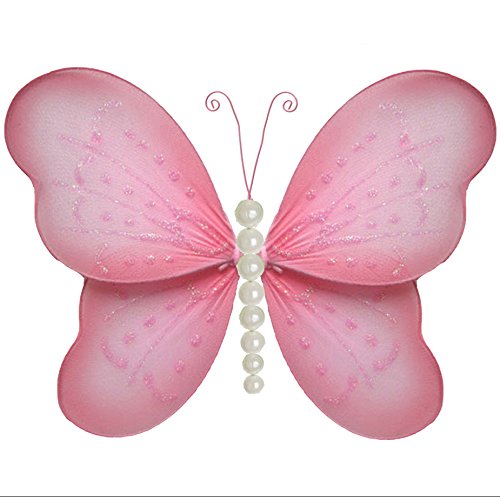 Hangingバタフライピンクパールナイロンメッシュ蝶デコレーション装飾赤ちゃん保育園寝室女の子部屋天井壁装飾誕生日パーティーベビーシャワーバスルーム子供Childrens 3dアートDIY Small 5" ピンク 5PPLB
