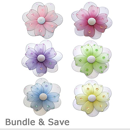 - 育児室、子供部屋に最適な女の子の部屋とホームデコレーション。ナイロンを垂らしたデイジーの花がゴージャスな、二重構造ペタル作図用。ホワイトナイロン生地を使用し、前面の花びらの裏側花びらは色はナイロン、グリッター、スパンコールがアクセントです。上の花は白い木のセンターの葉でバックすることはできません。これらのかわいいオーガンジーフラワーデコレーションが柔らかで装着するため配線のフレーム。