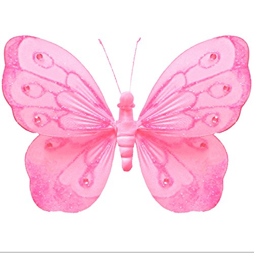HangingバタフライダークピンクフクシアShimmerナイロンButterfliesメッシュデコレーション装飾赤ちゃん保育園寝室女の子部屋天井壁装飾結婚式誕生日パーティーベビーシャワーバスルームキッズ3dアートDIY Small 5" ピンク 5DPSHB