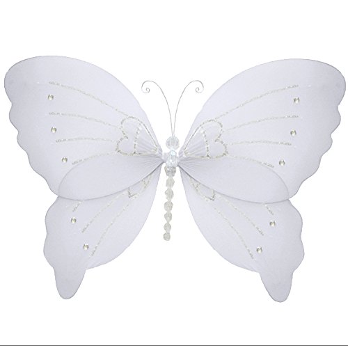 バタフライデコレーションクリスタルナイロンHanging Butterflies Decor。装飾ベビーシャワーの赤ちゃん保育園寝室、ガールズ部屋天井壁装飾、ウェディング誕生日パーティー、ブライダル、バスルーム。Kids子供用バタフライ装飾3dアートクラフト Small 7"W x 5"H ホワイト