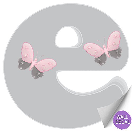 壁文字グレーグレーピンクバタフライ手紙装飾壁の子供の部屋保育園赤ちゃんの赤ちゃん名前女の子寝室装飾 – Alphabetビニールステッカーデカール子供デコレーショングラフィックスButterflies Letter e EGRBAWL