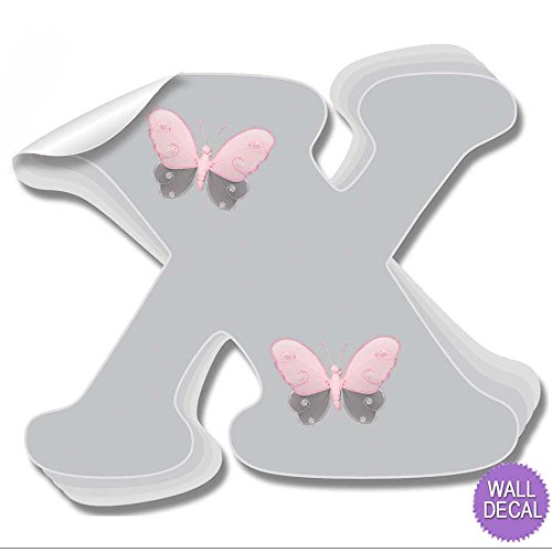 壁文字グレーグレーピンクバタフライ手紙装飾壁の子供の部屋保育園赤ちゃんの赤ちゃん名前女の子寝室装飾 – Alphabetビニールステッカーデカール子供デコレーショングラフィックスButterflies Letter x XGRBAWL