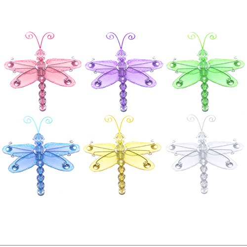 - トンボの装飾用ワイヤー吊りナイロンメッシュ3 " W x 3 " H Assorted Mini XSトンボ6個セット(パープル、ピンク、イエロー、ブルー、グリーン、ホワイトを参照してください。クラフトデコレーションベビー保育園ベッド少女用ルーム天井壁の結婚式誕生日パーティー結婚式やベビーシャワー、パーティー、DIY