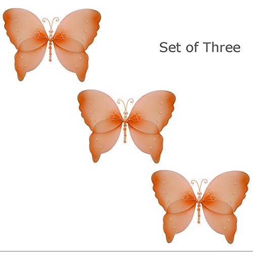 Set of 3 : Hangingバタフライオレンジクリスタルナイロンメッシュ蝶赤ちゃん保育園寝室の女の子部屋天井壁装飾結婚誕生日パーティーシャワーホームPlayroomデコレーションby bugs-n-blooms Set of 3 - X-Large 18"W x 11"H オレンジ 18OCB3S