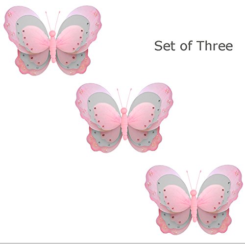 Set of 3 : HangingバタフライピンクグレーグレーTriple Layeredナイロンメッシュ蝶赤ちゃん保育園寝室女の子部屋天井壁装飾結婚誕生日パーティーシャワーPlayroom Decorations bugs-n-blooms Set of 3 - Small 7"W x 5"H 7PGRTLBS
