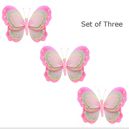 Set of 3 : HangingバタフライダークピンクグリーンピンクTriple Layeredナイロンメッシュ蝶赤ちゃん保育園寝室女の子部屋天井壁装飾ウェディング誕生日パーティーブライダルシャワーデコレーションbugs-n-blooms Set of 3 - Large 13"W x 8"H 13DPGPTLBS