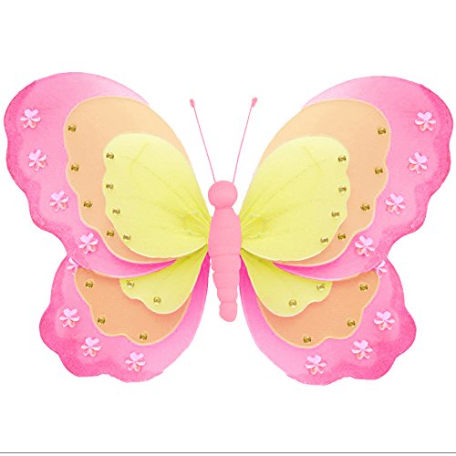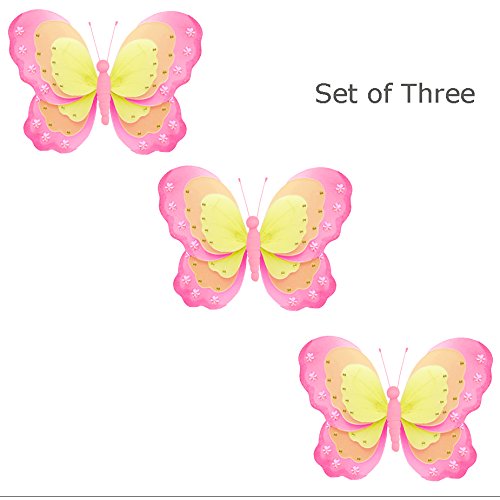 蝶のHangingバタフライダークピンクオレンジイエロートリプルLayeredナイロンメッシュ3赤ちゃん保育園寝室女の子部屋天井壁装飾ウェディングキッズ誕生日パーティーシャワーデコレーションbugs-n-blooms Set of 3 - Small 7"W x 5"H 7DPOYTLBS