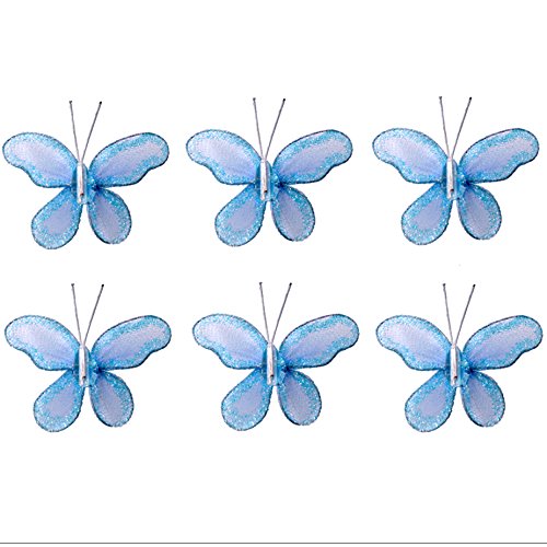 ナイロン蝶装飾キラキラ – ミニメッシュオーガンジーウェディング、パーティー、テーブル散布、スクラップブック、クラフト、カード、女の子用バタフライインテリアベッドルーム、赤ちゃん保育園、ホーム、壁デコレーションby bugs-n-blooms X-Small 2"W x 2"H ブルー 2BMB-CS