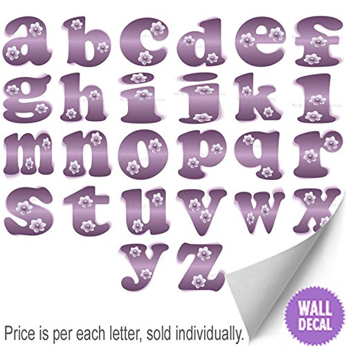 壁デカールレターベビー名デカールステッカー装飾文字装飾花 – 子供の赤ちゃんの保育園、少女の寝室、子どもの遊び部屋by bugs-n-blooms Letter " e " パープル EPUFAWL-CS