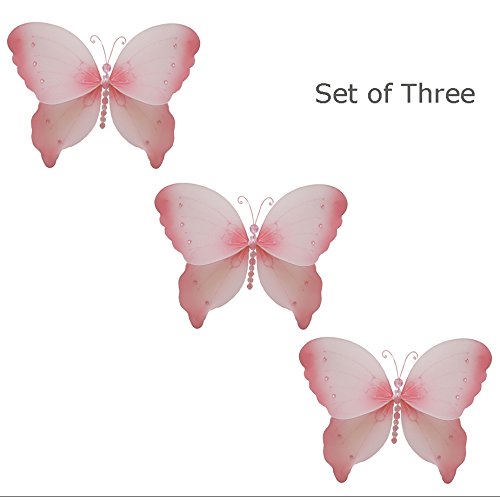 ナイロンHanging Butterfliesデコレーションクリスタル – メッシュバタフライ装飾の女の子のベッドルーム、赤ちゃん保育園、ホーム、Playroom、結婚式、壁&天井by bugs-n-blooms Set of 3 - Small 7"W x 5"H ピンク 7PCB3S-CS2