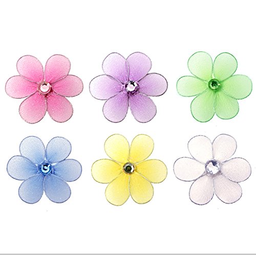 フラワー装飾2 " Assorted Mini XSビーズナイロンメッシュ花6ピースデコレーションセット装飾赤ちゃん保育園寝室女の子部屋壁ウェディング誕生日パーティーシャワーCrafts Scrapbooks招待状DIYアート
