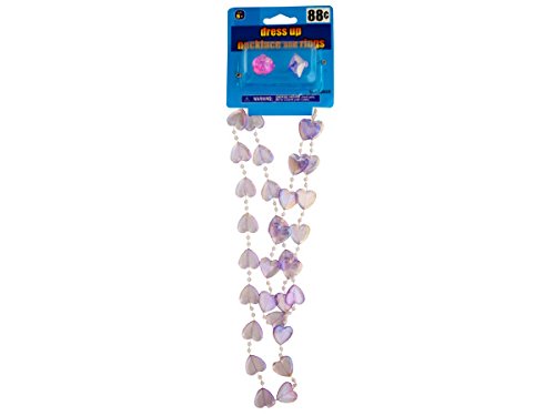 - Girls will love accessorizing with this fun Dress Up Beaded Hearts Necklace and Rings Set featuring a 23.5 in. necklace with Transparent, iridescent heart beads and small round beads and two faceted flower-shaped rings in Pink and Purple
