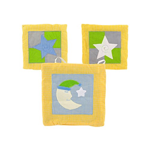 パッケージ: 16の着心地で温かい雰囲気のベビールームを、ファブリックの壁四角形が表示されます。各正方形の中央には、チェッカー模様のイエロー、パディングと異なるパターンもご用意しています。星と月。四角形は個別にパッケージされ、寸法は約9 1 / 2 " X 9 1 / 2」を参照してください。色:ホワイト,イエロー,ブルー