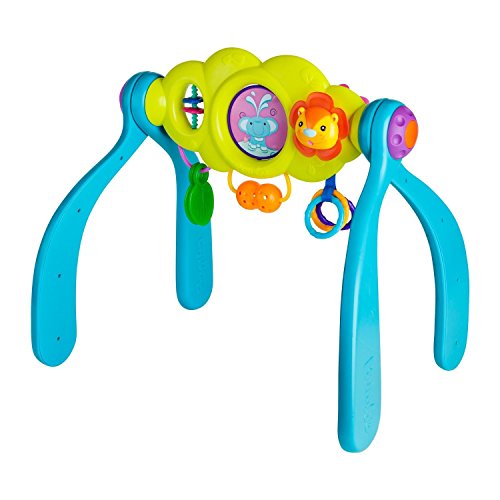 The play center that converts from infant to toddler with the turn of a knob! Take your child on an adventure with the Stages Safari Adjustable Play Center. It works perfectly with a Bumbo seat or for tummy time, sitting, or standing play. The Stages Safari rotates to keep your child entertained with two sides of toys and easily collapses for convenient storage. BPA, PVC, and Phthalate-Free.
