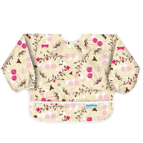 バンキンス 油が落ちるスリーブビブ【日本正規品】柔らかくて軽量 洗濯機で洗えてすぐ乾く お食事用防水ビブ 長袖タイプ 6~24ヶ月 Flutter Floral(ベージュ)ベルクロタイプ SUV464