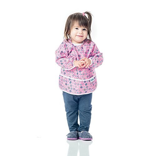 汚しやすい袖部分を手首までカバーする長袖タイプ。手首部分はゴムでしぼってあるので捲りあがりにくく、お洋服を汚れから守ります。後ろはひもで結ぶだけなので、着脱もカンタン。バンキンスオリジナルのウォータープルーフ素材で汚れも簡単にふき取れる。防水加工済みで浸みこみにくく、匂い移りしにくい。ポケット付で食べこぼしをしっかりキャッチ。洗濯機で洗えてすぐ乾きます。毎日のお食事に使う物だから、お手入れカンタンなのが嬉しい。お手入れもカンタン。表面加工がされているので洗濯後も色あせにくい。Bumkinsのビブやスモックは全てPVC、BPA、フタル酸、ビニール、鉛不使用の安心素材で出来ています。Bumkins商品は、玩具や子供製品の有害物質含有量に関して厳しい基準を設けた、米国消費者製品安全性改善法(CPSIA:Consumer Product Safety Improvement Act)の基準をクリアし、カリフォルニアの州法プロポジション65の定めたガイドラインを遵守しています。プロポジション65とは、正式名称:Proposition65 Safe Drinking Water and Toxic Enforcement Act of 1986(1986年 安全飲料水および有害物質施行法)で、作業者や消費者が有害物質に暴露する可能性がある場合、事前に警告(告知)することを義務付けている米国カリフォルニアの州法です。