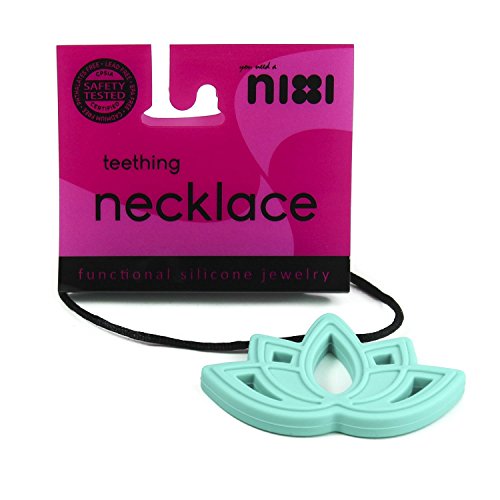 Bumkins Nixi Lotus Silicone Pendant Teething Necklace, Turquoise