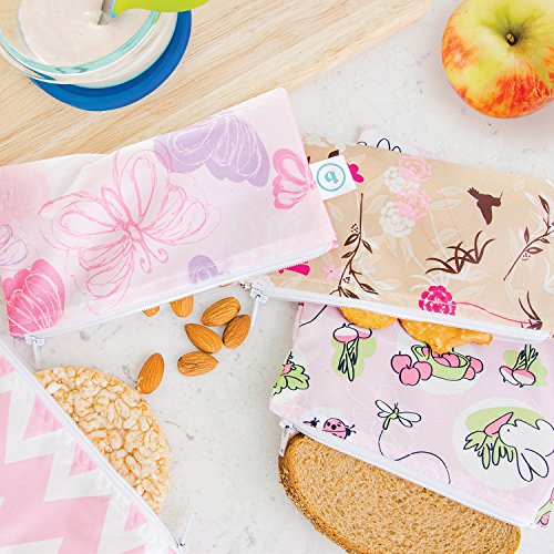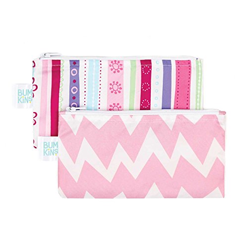 Bumkins Reusable Snack Bag Small 2 Pack, Ribbon & Pink Chevron (G9) by Bumkins
