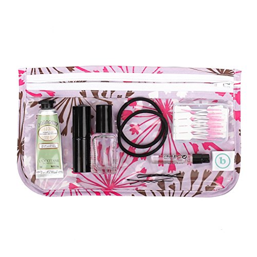 Clear front for easy organizing; TSA Compliant;Secure zipper closure;Made from easy wipe, stain and odor resistant, waterproof fabric;Spot clean only;Large bag measures 9.5 by 8.5; Medium bag measures 9 x 7 ; Small bag measures 9 x 5