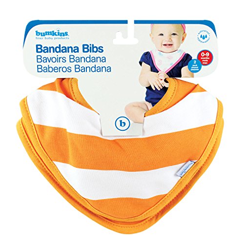 - Bumkins Printed Waterproof Bandana Bib 2 Pack, Orange Stripe (0-9 Months)