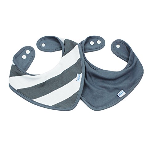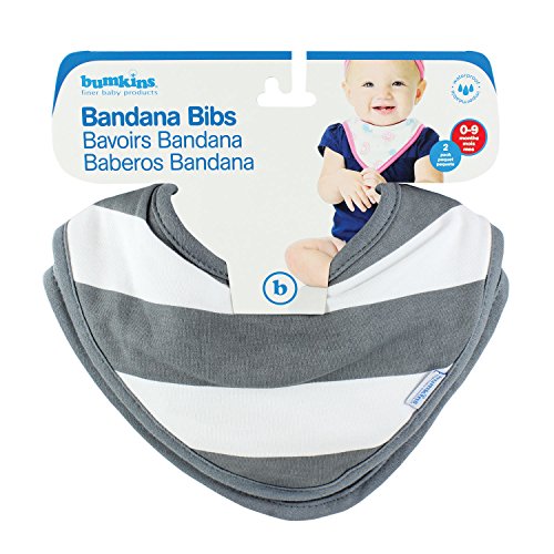 - Bumkins Printed Waterproof Bandana Bib 2 Pack, Gray Stripe (0-9 Months)