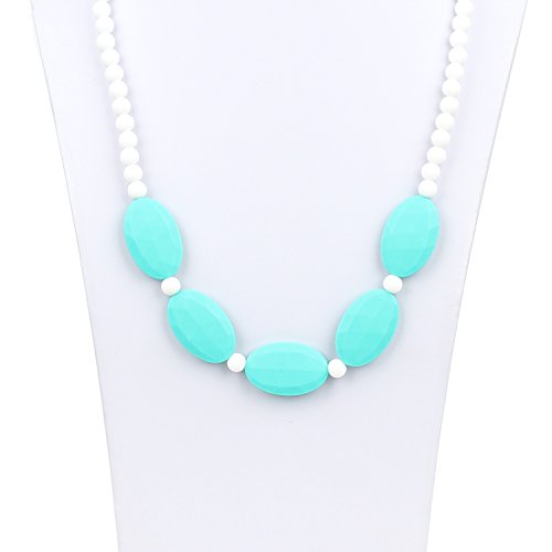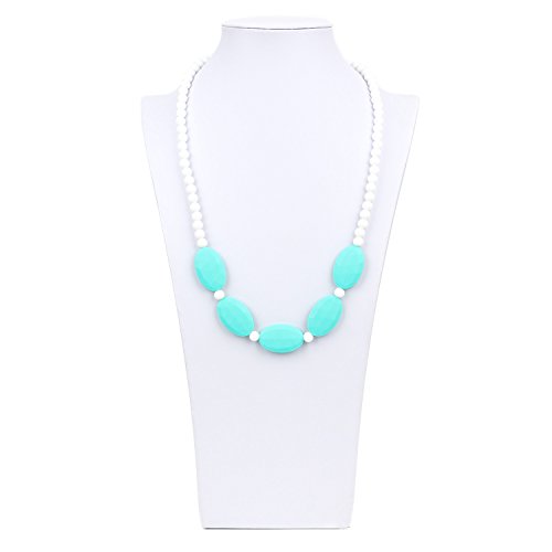 Nixi Sasso Teething Necklace, White/Turquoise by Bumkins