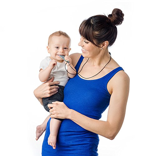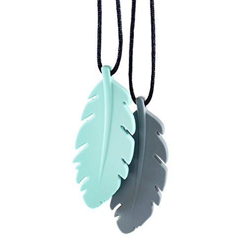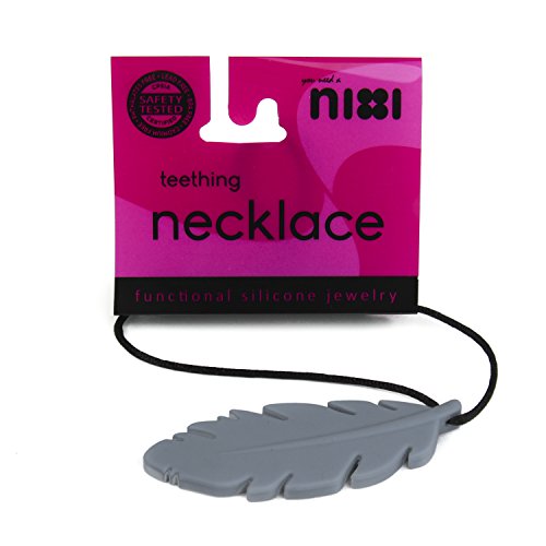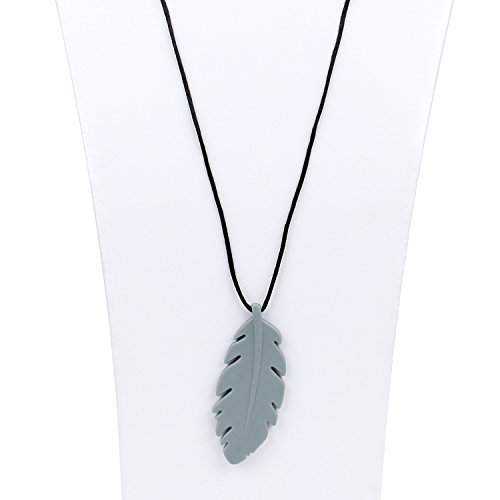 - Bumkins Nixi Feather Silicone Pendant Teething Necklace, Gray
