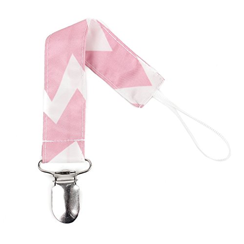 Bumkins Pacifier Clip, Pink Chevron by Bumkins