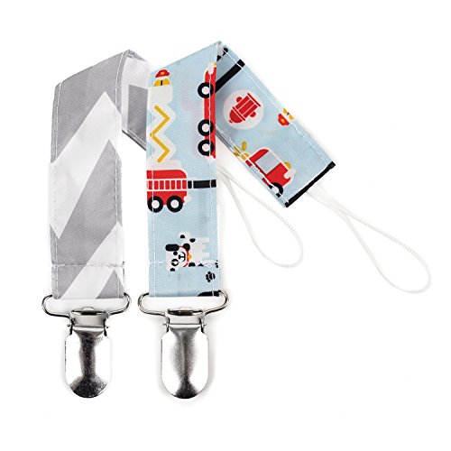 Bumkins Pacifier Clip 2 Pack, Boy (B60-Firetruck/Gray Chevron)