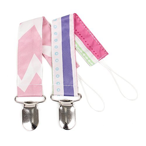 Bumkins 2 Piece Pacifier Clip, Ribbon and Pink Chevron by Bumkins