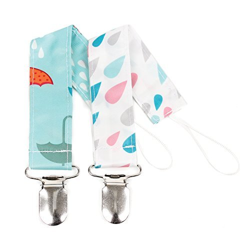 Bumkins 2 Piece Pacifier Clip, Raindrop and Umbrella by Bumkins