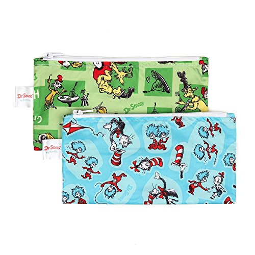 Bumkins Reusable Snack Bag Small 2 Pack, Seuss Cat in the Hat & Green Eggs (SN)