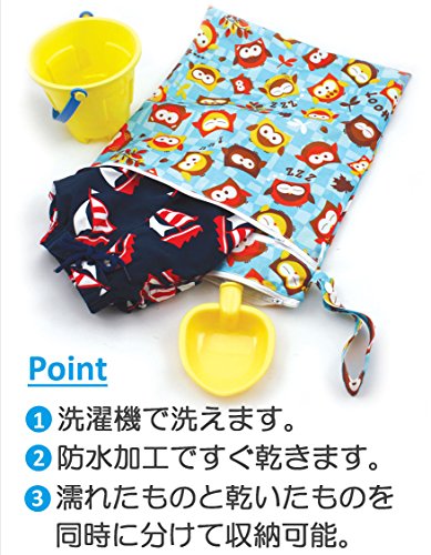 濡れた水着、体操服、お着替え…etc、防水加工で濡れたものと乾いたものを、別々のポケットに入れることで同時に持ち運び可能!洗濯機で洗えてお手入れもカンタン♪持ち運びに便利なストラップ付き