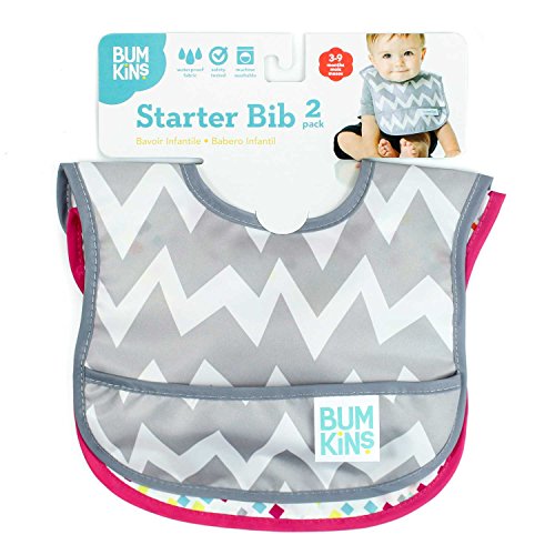 Bumkins Waterproof Starter Bib 2 Pack, Girl (G48-Gray Chevron/Confetti) (4-9 Months) by Bumkins