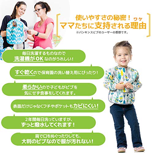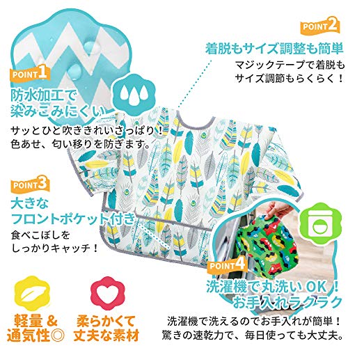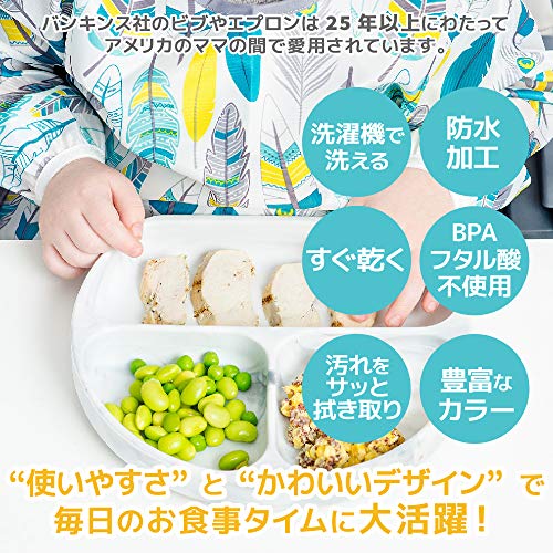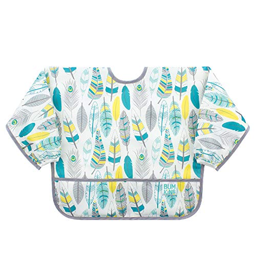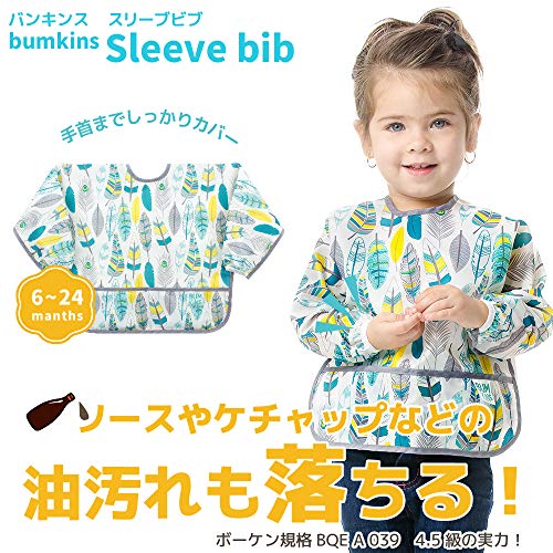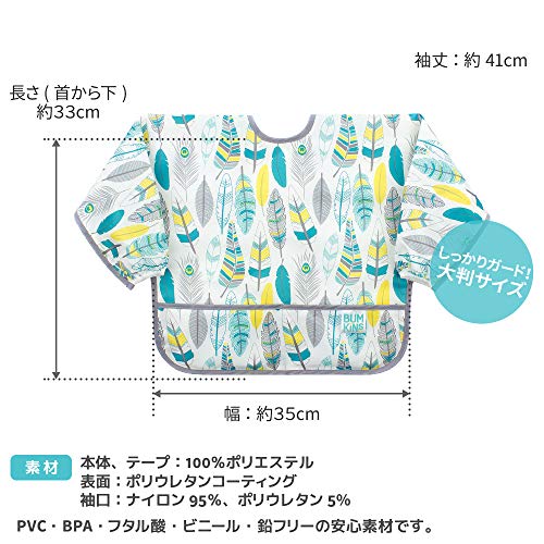 Bumkins バンキンス 油が落ちるスリーブビブ【日本正規品】柔らかくて軽量 洗濯機で洗えてすぐ乾く お食事用防水ビブ 長袖タイプ 6~24ヶ月 Feathers(ホワイト) ベルクロタイプ SUV104