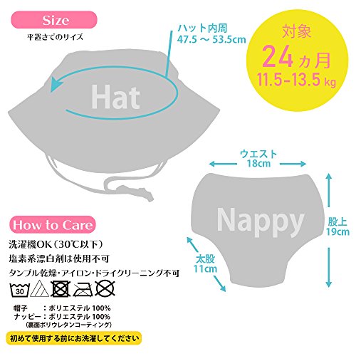 - [本体サイズ] ナッピー:ウェスト18cm×股上19cm×太股周り11cm(平置き)/ ハット:内周:47.5-53.5cm (本体表記:Large)