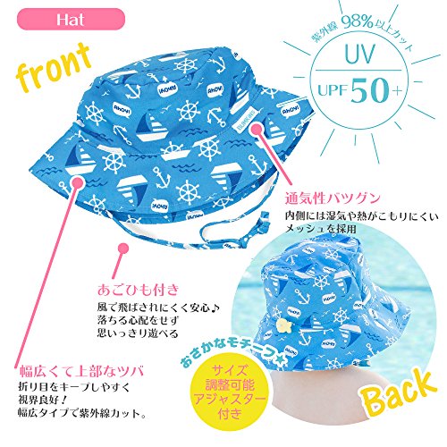 - プールでの水遊びやベビースイミングにぴったり。同じ柄の帽子とセットでかわいくコーディネート。