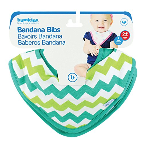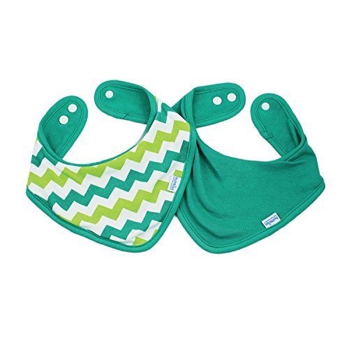 • Bumkins Printed Waterproof Bandana Bib 2 Pack, Green Chevron (0-9 Months)